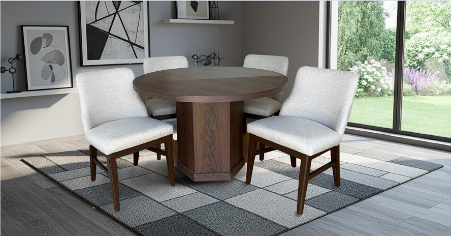 El Antecomedor Malibu para 4 personas combina diseño moderno y funcionalidad en un elegante conjunto de mesa redonda con 4 sillas tapizadas.